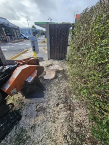This job was completed in a morning, with full removal and stump grinding finished safely and efficiently. The site was left tidy, and there was no disruption to the operations of the neighbouring business.